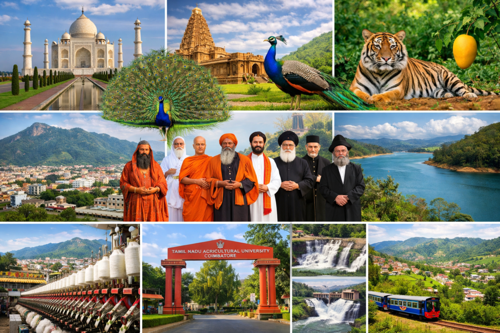 India is rich in monuments, temples, tombs, churches, museums, historical buildings, wildlife sanctuaries, and scenic landscapes. It is also the birthplace of many great leaders and freedom fighters who shaped the nation’s history.